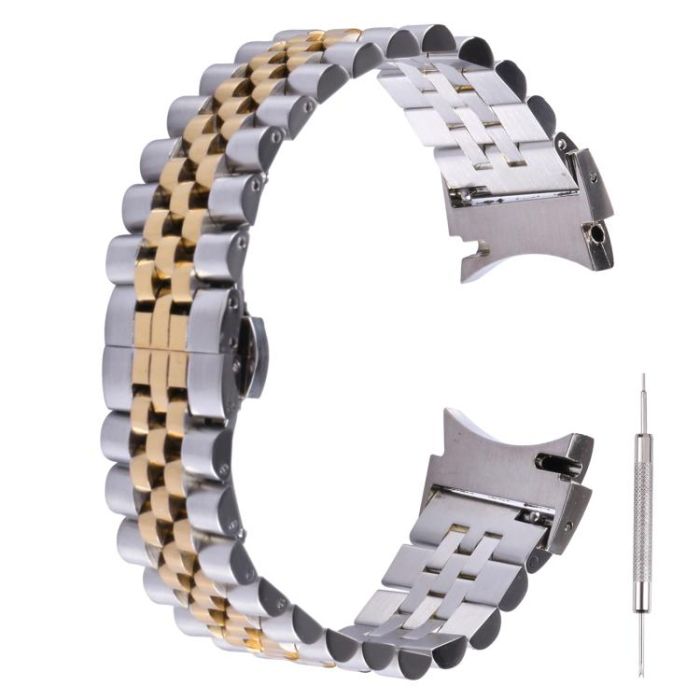 For Samsung Galaxy Watch4 40mm/44mm Five-bead Stainless Steel Watch Band(Silver Gold)