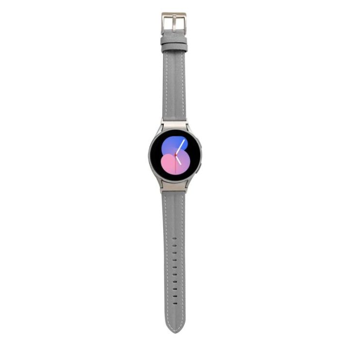For Samsung Galaxy Watch5 40mm / 44mm Grooved Genuine Leather Watch Band(Dark Grey)