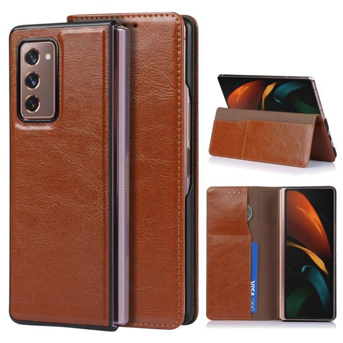 For Samsung Galaxy Z Fold2 5G 2 In 1 Crazy Horse Texture Split Horizontal Flip Leather Case with Holder & Card Slot(Brown)