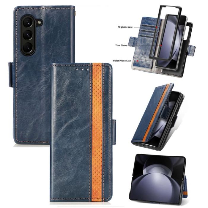 For Samsung Galaxy Z Fold5 5G CaseNeo Splicing Dual Magnetic Buckle Leather Phone Case(Blue)