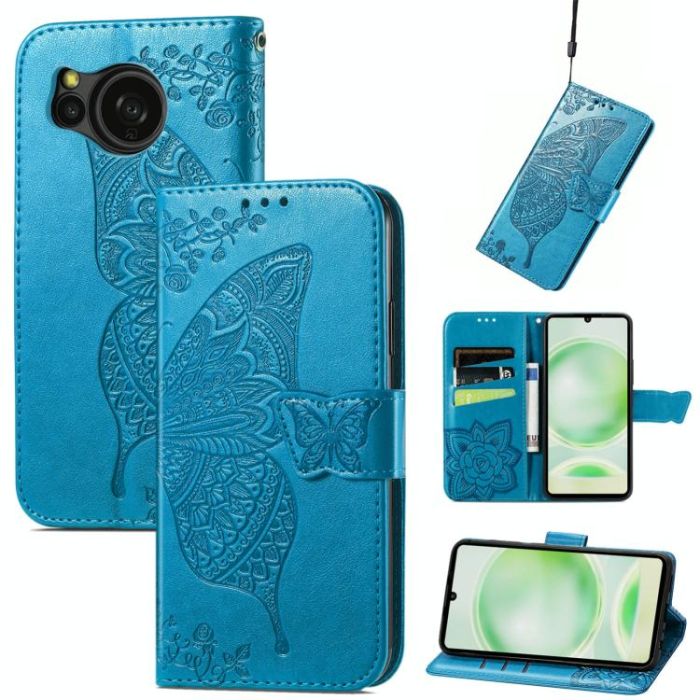 Description / For Sharp Aquos Sense8 Butterfly Love Flower Embossed Leather Phone Case(Blue)