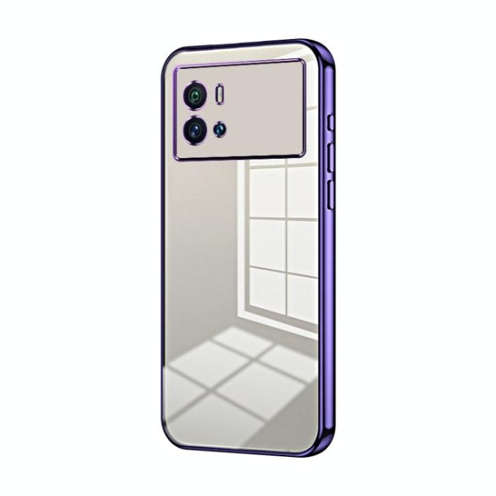 Description / For vivo iQOO 9 Transparent Plating Fine Hole Phone Case(Purple)