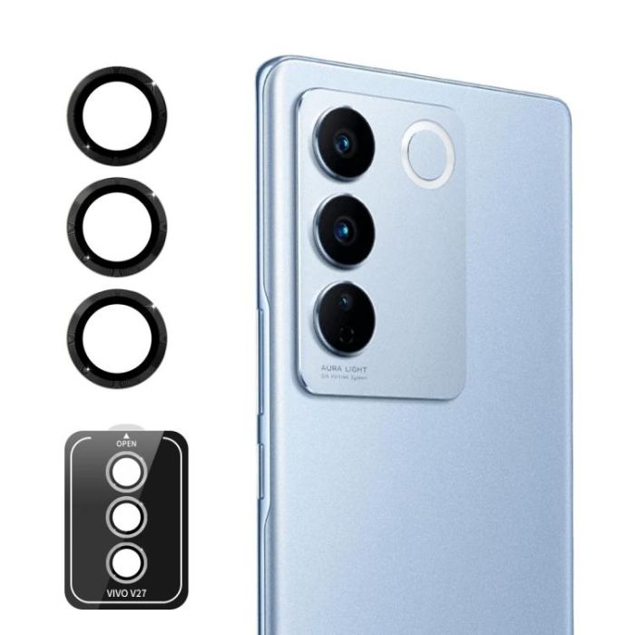 For vivo V27 / V27 Pro ENKAY Hat-Prince 9H Rear Lens Aluminium Alloy Tempered Glass Film(Black)