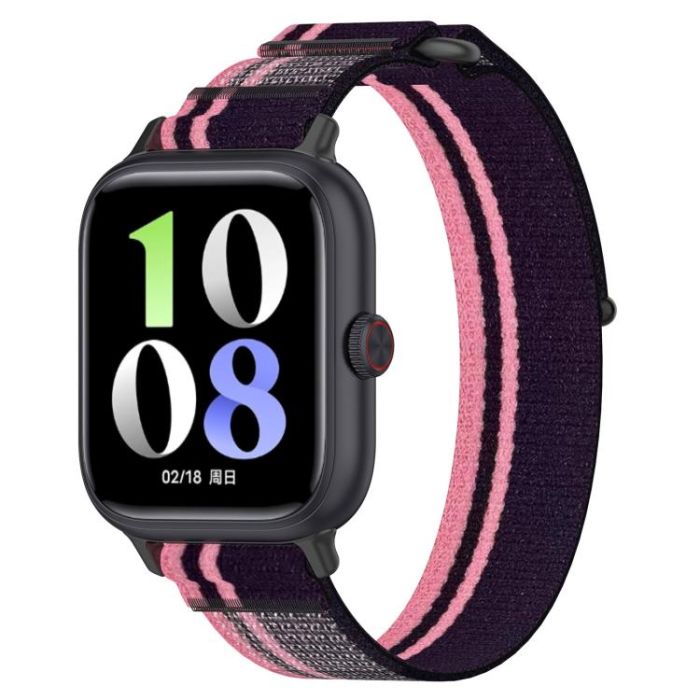 For vivo Watch GT Loop Nylon Hook and Loop Fastener Watch Band(Pink Purple)