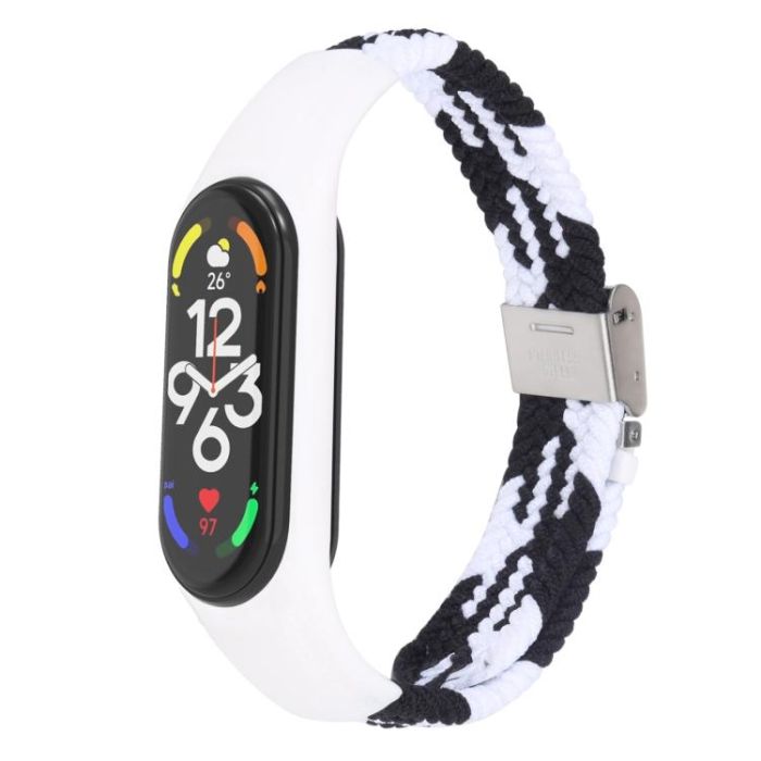 For Xiaomi Mi Band 7 Adjustable Nylon Braided Integrated Watch Band (Black White)