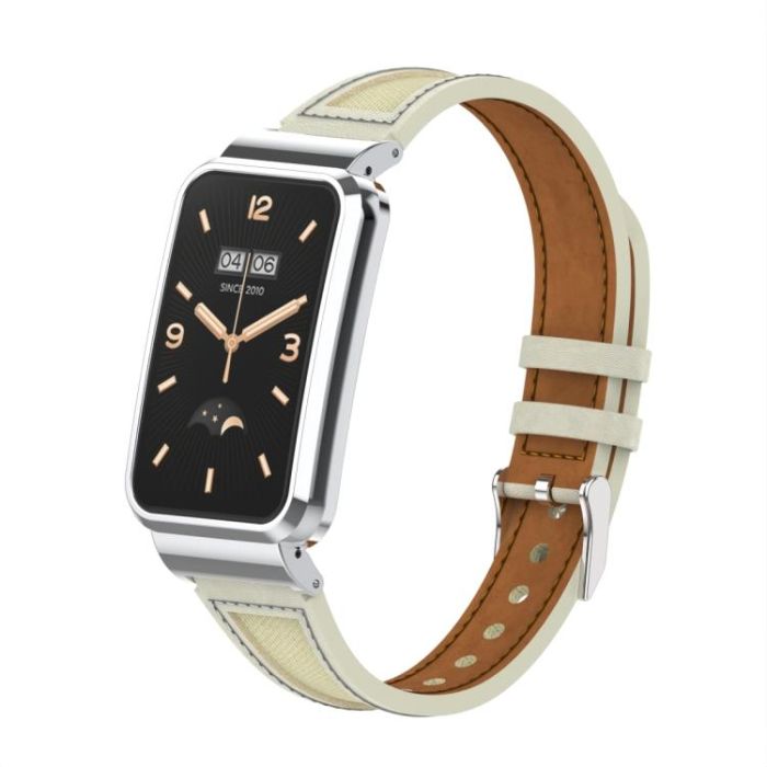 For Xiaomi Mi Band 7 Pro Collage Small Waist Leather Metal Frame Watch Band(Warm White)