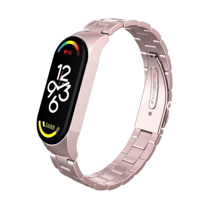 For Xiaomi Mi Band 7 Three-bead Stainless Steel Watch Band(Rose Gold)