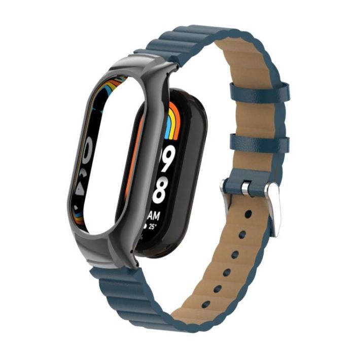 For Xiaomi Mi Band 8 Integrated Metal Case + Bamboo Leather Watch Band(Navy Blue)