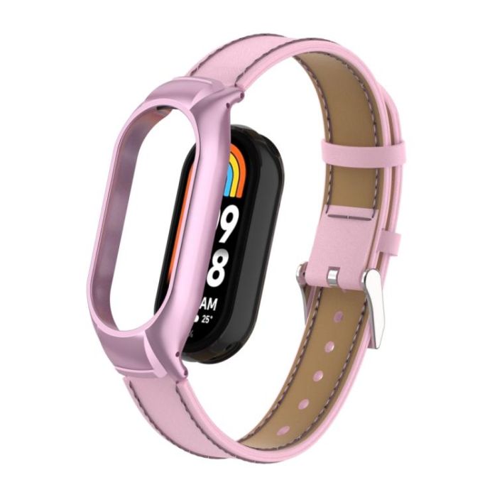 For Xiaomi Mi Band 8 Integrated Metal Case + Microfiber Sewing Leather Watch Band(Pink)