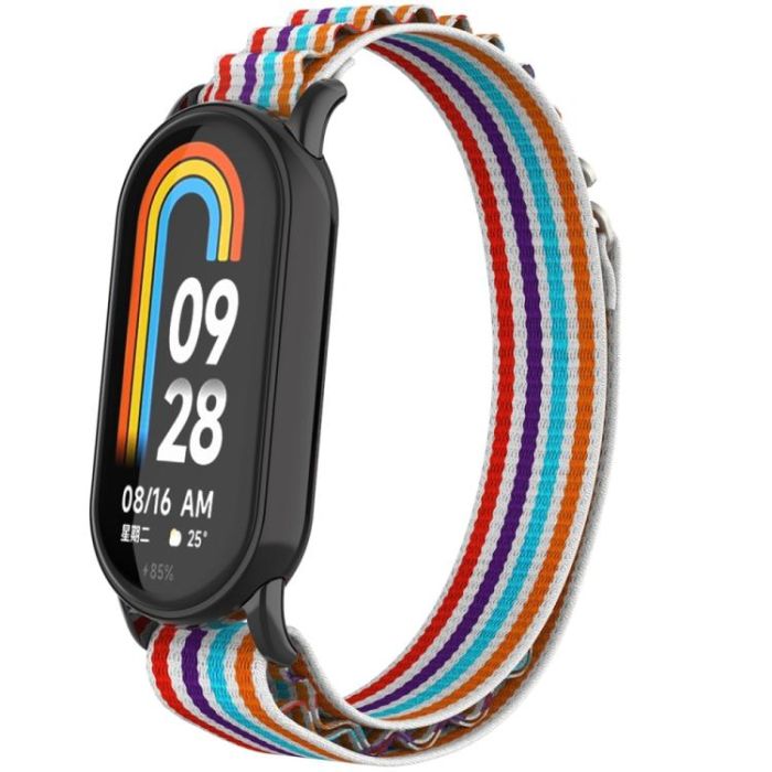 For Xiaomi Mi Band 8 Metal Plug Loop Nylon Watch Band(Black+Colorful)