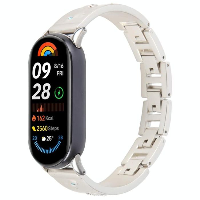 For Xiaomi Smart Band 9 / 8 Integrated Buckle Embossed Milanese Metal Watch Band(Starlight)