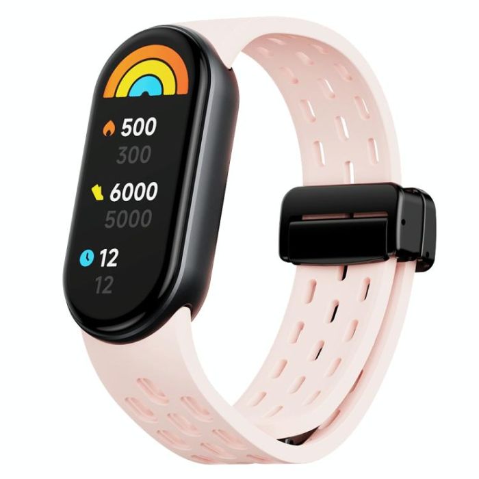 For Xiaomi Smart Band 9 Magnetic Folding Buckle Silicone Watch Band(Pink)