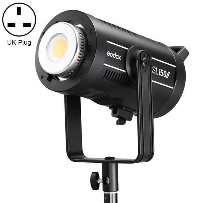 Features 1. SL150II LED Video Lights: 5600K daylight-balanced LED light sources in the power of 150Ws, are more professional, high-performance, and durable while maintaining the best features from their predeceesor. This LED light can benefit broadoasting, cinematography, online streaming, and other video applications 2. Accurate Color: With a CRI/TLCI rating of 96/97, it produces highly accurate color renditions and delivers pristine and natural results, greatly saving your post-production time and money. 3. Enhanced Output: With the included reflector, SL150ll output incredible 58000 Lux at 1 meter, creating an impressive bright light. With Dimming from full brightness to 0%, you can achieve lighting flexibility in different scenes. 4. Silent Mode: OperationThe stunning heat dissipation system and ultra quiet design allow SL II keeping at a negligible noise while working. It is perfect for sound-sensitive environments as you can turn off the fan at a touch of Silent mode button to eliminate the noise during use. 5. Incredible Flexibility: - The 360 degree rotatable U-shaped york offers excellent flexibility and can beused with most light stands. SL Il is widely compatible with various Bowens mount accessories, catering to your different requirements on light shaping. - Built-in 8 FX Special Effects Featuring 8 preset special effects, you can simulate the lighting effects of flash, storm, TV, and a broken bulb, and so on, bringing you more creative possibilities in photography and video shooting. 6. Wireless Remote Control: The built-in GODOX 2.4G wireless X system allows you to adjust the brightness, group and channel by RC-A6 remote controller with ease.Selectable 32 channels and 16 groups ensures minimal interference with other nearby systems and equipment.