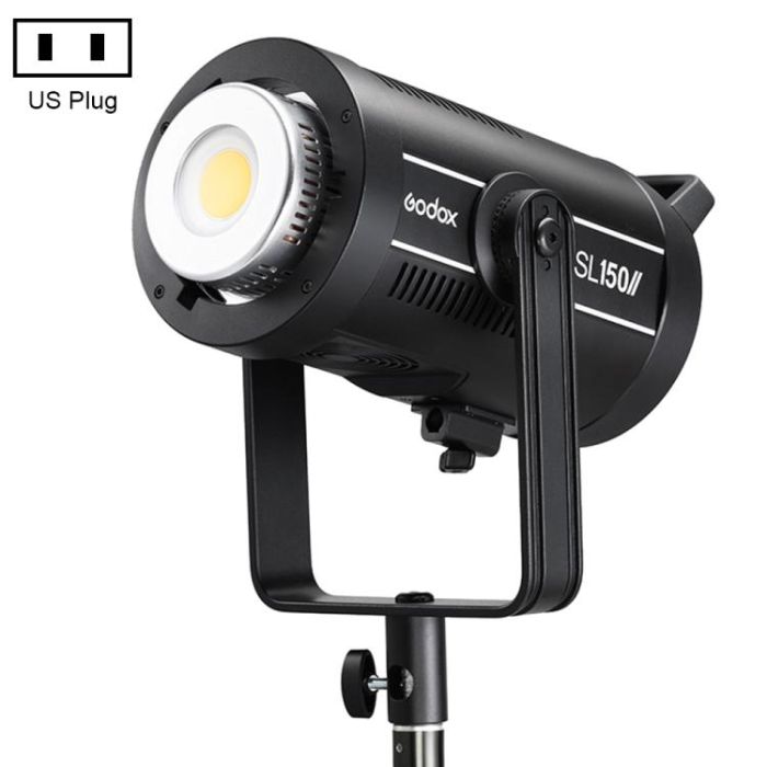 Features 1. SL150II LED Video Lights: 5600K daylight-balanced LED light sources in the power of 150Ws, are more professional, high-performance, and durable while maintaining the best features from their predeceesor. This LED light can benefit broadoasting, cinematography, online streaming, and other video applications 2. Accurate Color: With a CRI/TLCI rating of 96/97, it produces highly accurate color renditions and delivers pristine and natural results, greatly saving your post-production time and money. 3. Enhanced Output: With the included reflector, SL150ll output incredible 58000 Lux at 1 meter, creating an impressive bright light. With Dimming from full brightness to 0%, you can achieve lighting flexibility in different scenes. 4. Silent Mode: OperationThe stunning heat dissipation system and ultra quiet design allow SL II keeping at a negligible noise while working. It is perfect for sound-sensitive environments as you can turn off the fan at a touch of Silent mode button to eliminate the noise during use. 5. Incredible Flexibility: - The 360 degree rotatable U-shaped york offers excellent flexibility and can beused with most light stands. SL Il is widely compatible with various Bowens mount accessories, catering to your different requirements on light shaping. - Built-in 8 FX Special Effects Featuring 8 preset special effects, you can simulate the lighting effects of flash, storm, TV, and a broken bulb, and so on, bringing you more creative possibilities in photography and video shooting. 6. Wireless Remote Control: The built-in GODOX 2.4G wireless X system allows you to adjust the brightness, group and channel by RC-A6 remote controller with ease.Selectable 32 channels and 16 groups ensures minimal interference with other nearby systems and equipment.