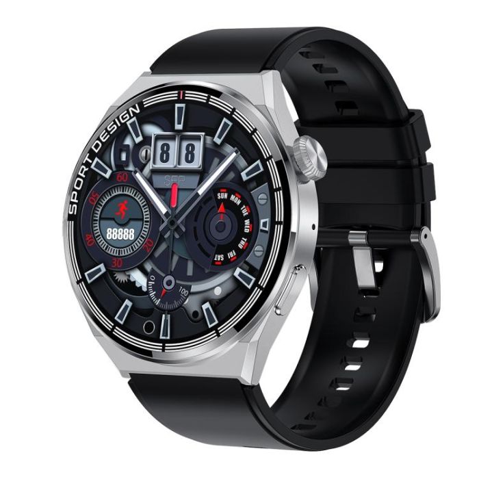 HDT MAX 1.60 inch Silver Dial Silicone Band IP68 Waterproof Smart Watch Support Bluetooth Call(Black)