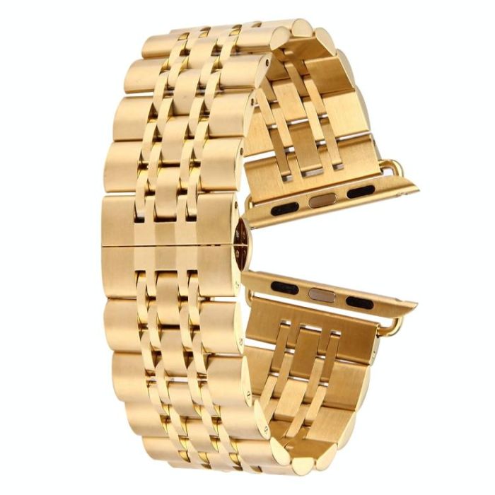 Hidden Butterfly Buckle 7 Beads Stainless Steel Watch Band For Apple Watch 42mm(Gold)