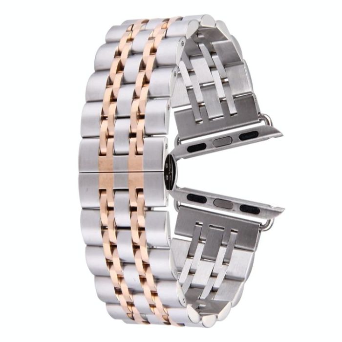 Hidden Butterfly Buckle 7 Beads Stainless Steel Watch Band For Apple Watch 42mm(Silver Rose Gold)