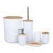6 In 1 Toothbrush Holder Kit Toiletries Bamboo Wood Bathroom Trash Can Bathroom Set(Gray)