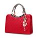 Large capacity PU Leather Diamond Pattern Ladies Handbag with Hanging Ornaments(Red)