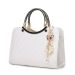 Large capacity PU Leather Diamond Pattern Ladies Handbag with Hanging Ornaments(White)