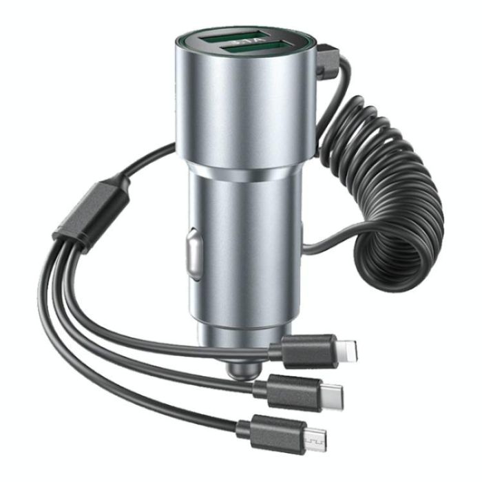 K15 Car Adapter 3 in 1 Stretchable Cable 22.5W Quick Charge Cigarette Lighter Dual USB Ports