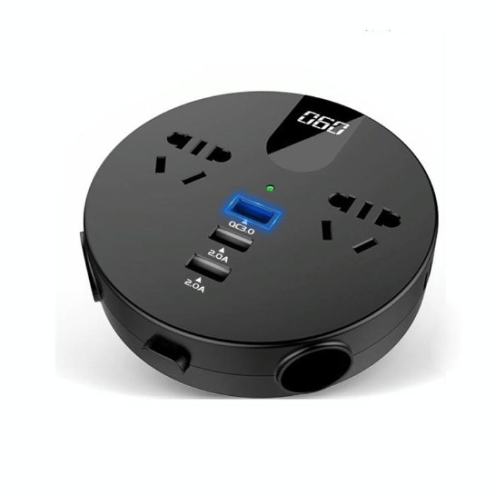 QC3.0 Car 12V 24V To 110V 220V Multi-function Inverter(Black Round)