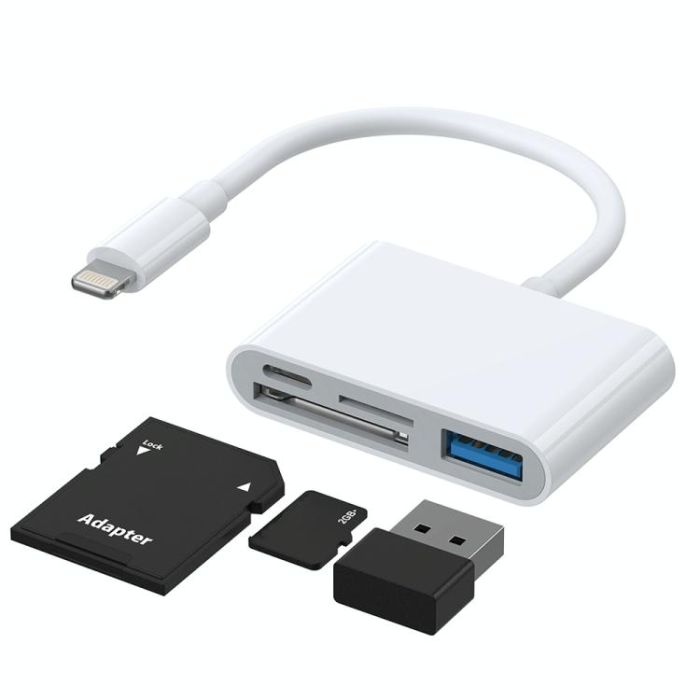 JOYROOM S-H142 4 in 1 8 Pin to SD / TF Card + 8 Pin Charge + USB Interface OTG Camera Reader Adapter(White)