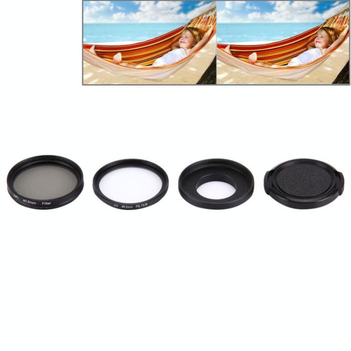 JUNESTAR 4 in 1 Proffesional 40.5mm Lens Filter(CPL + UV) & Waterproof Housing Case Adapter Ring & Lens Protective Cap for GoPro HERO4 / 3+ / 3 Sport Action Camera
