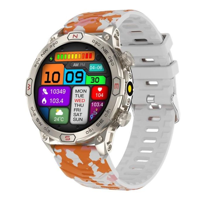 KC86 1.43 inch Color Screen Smart Watch, Support Bluetooth Call / Health Monitoring(Camouflage Orange)