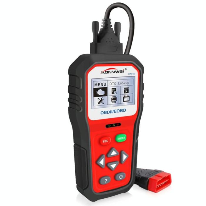 The KONNWEI Kw818 new OBD2 / EOBD / CAN auto diagnostic scanner supports all 10 OBDII test modes on all OBDII compliant vehicles for a complete diagnosis. Featuring the unique patented One-Click I/M Readiness Key, TFT color display and built-in speaker, Real Time Battery Voltage Monitoring, the KONNWEI KW818 is truly the ultimate in power and affordability, allowing users to do their jobs faster.