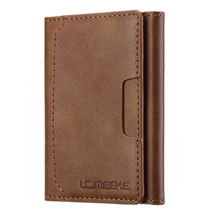 LC.IMEEKE 5-Cards MagSafe RFID Leather Card Bag(Brown)