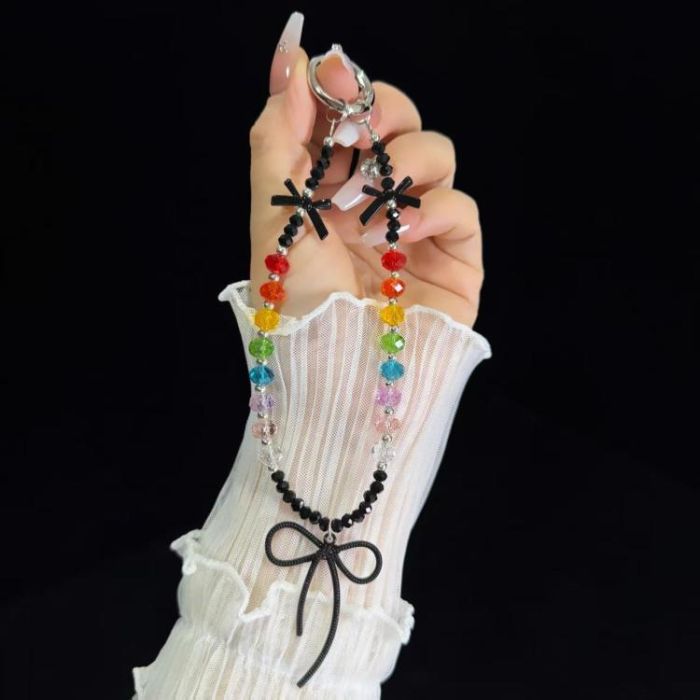 Love Bow Crystal Beads Mobile Phone Chain(Black)