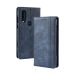 Magnetic Buckle Retro Crazy Horse Texture Horizontal Flip Leather Case for Motorola One Action, with Holder & Card Slots & Photo Frame(Blue)