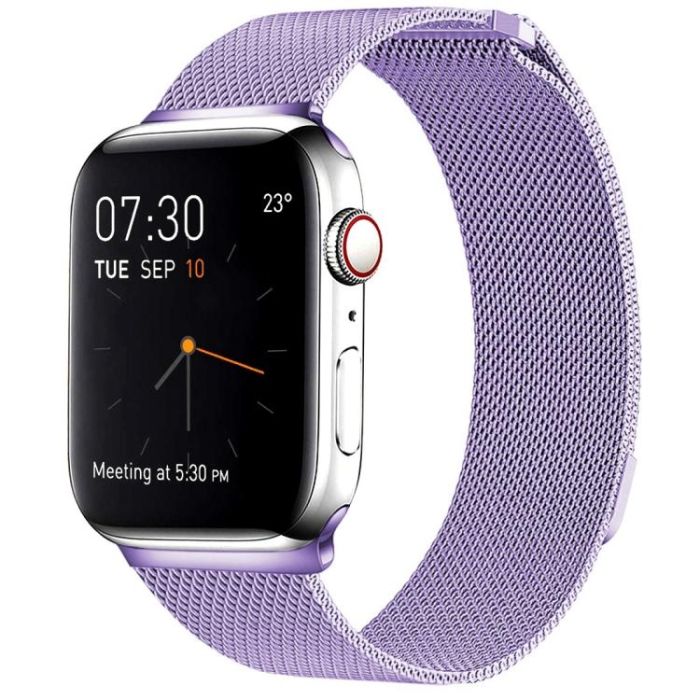 Milanese Loop Magnetic Stainless Steel Watch Band for Apple Watch Ultra 49mm&Watch Ultra 2 49mm / Series 10 46mm / 9&8&7 45mm / SE 3&SE 2&6&SE&5&4 44mm / 3&2&1 42mm(Light Purple)