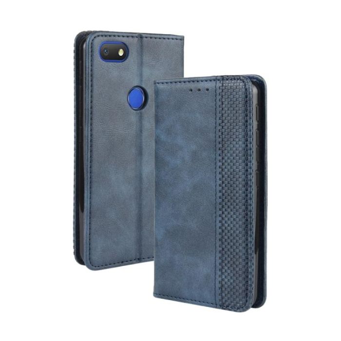 For Alcatel 1V (2019) with Fingerprint Hole Magnetic Buckle Retro Crazy Horse Texture Horizontal Flip Leather Case with Holder & Card Slots & Photo Frame(Blue)