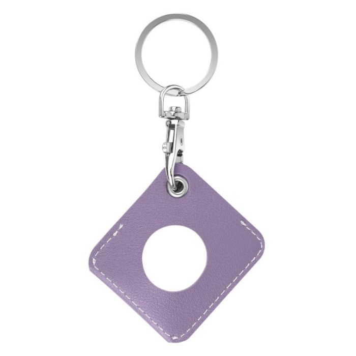 Square PU Leather Case Shockproof Anti-scratch Protective Cover with Keychain Ring Loop For AirTag(Taro Purple)