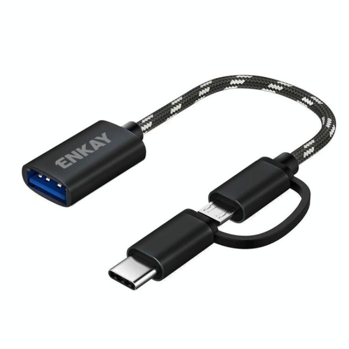 ENKAY ENK-AT113 2 in 1 Type-C / Micro USB to USB 3.0 Nylon Braided OTG Adapter Cable(Black)