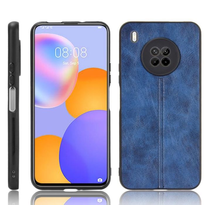 For Huawei Y9a Shockproof Sewing Cow Pattern Skin PC + PU + TPU Case(Blue)
