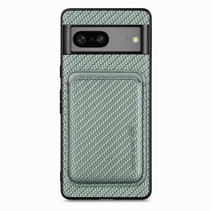 For Google Pixel 7 Carbon Fiber Leather Card Magsafe Phone Case(Green)