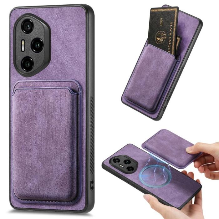 For Honor 300 Pro Retro Leather Card Bag Magnetic Phone Case(Purple)