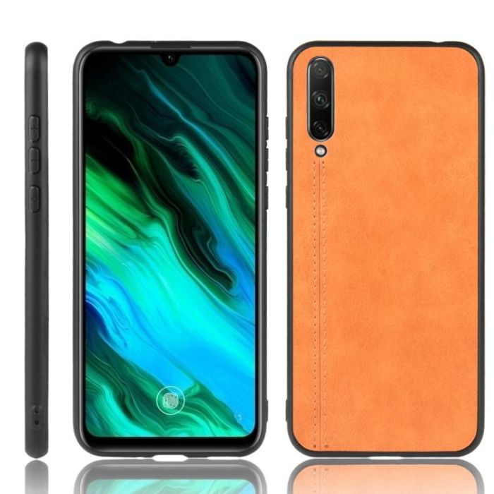 For Huawei Honor 20 Lite Shockproof Sewing Cow Pattern Skin PC + PU + TPU Case(Orange)