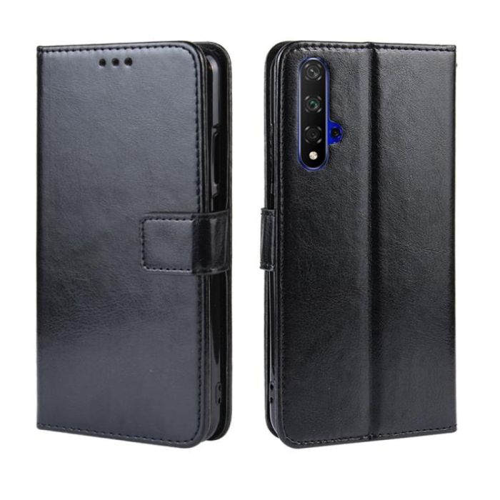 Retro Crazy Horse Texture Horizontal Flip Leather Case for HUAWEI Honor 20 , with Holder & Card Slots & Photo Frame(Black)