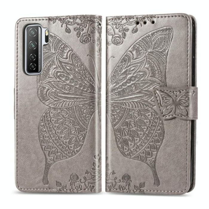 For Huawei Nova 7 SE/P40 Lite 5G Butterfly Love Flower Embossed Horizontal Flip Leather Case with Bracket / Card Slot / Wallet / Lanyard(Gray)