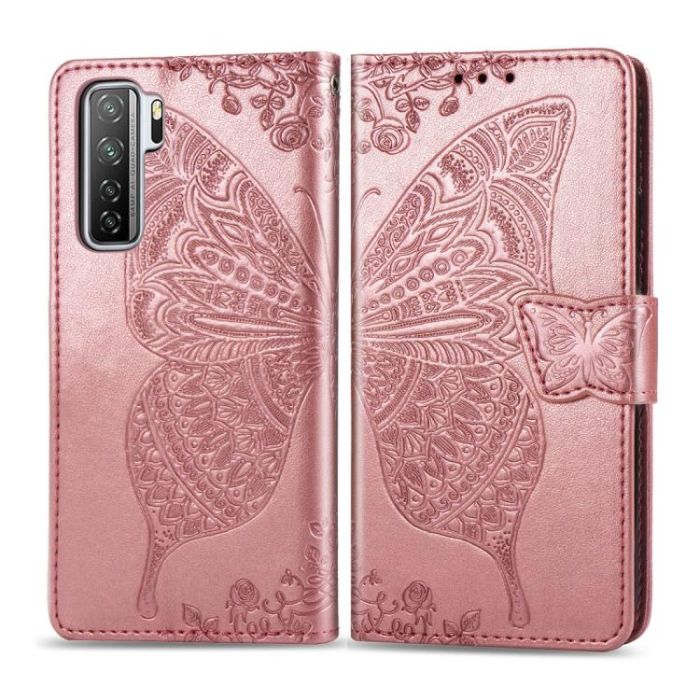 For Huawei Nova 7 SE/P40 Lite 5G Butterfly Love Flower Embossed Horizontal Flip Leather Case with Bracket / Card Slot / Wallet / Lanyard(Rose Gold)