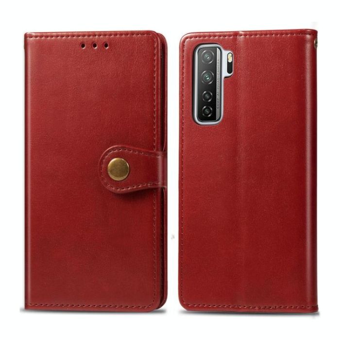 For Huawei Nova 7 SE/P40 Lite 5G Retro Solid Color Leather Buckle Phone Case with Lanyard & Photo Frame & Card Slot & Wallet & Stand Function(Red)