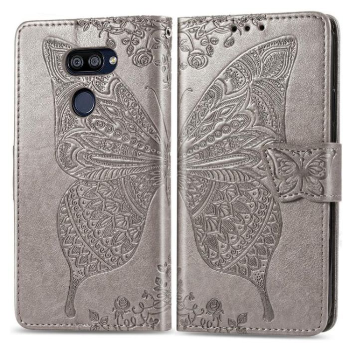 For LG K40S Butterfly Love Flower Embossed Horizontal Flip Leather Case with Bracket / Card Slot / Wallet / Lanyard(Gray)