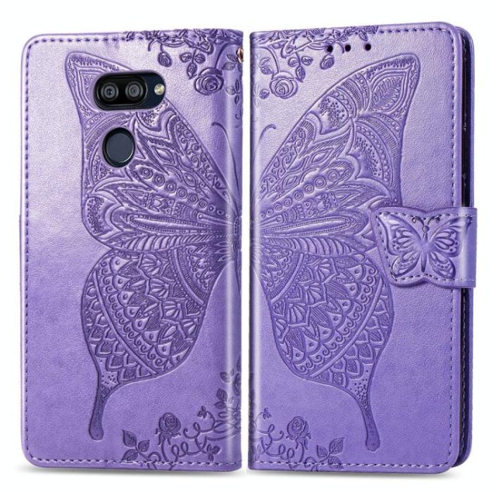 For LG K40S Butterfly Love Flower Embossed Horizontal Flip Leather Case with Bracket / Card Slot / Wallet / Lanyard(Light Purple)