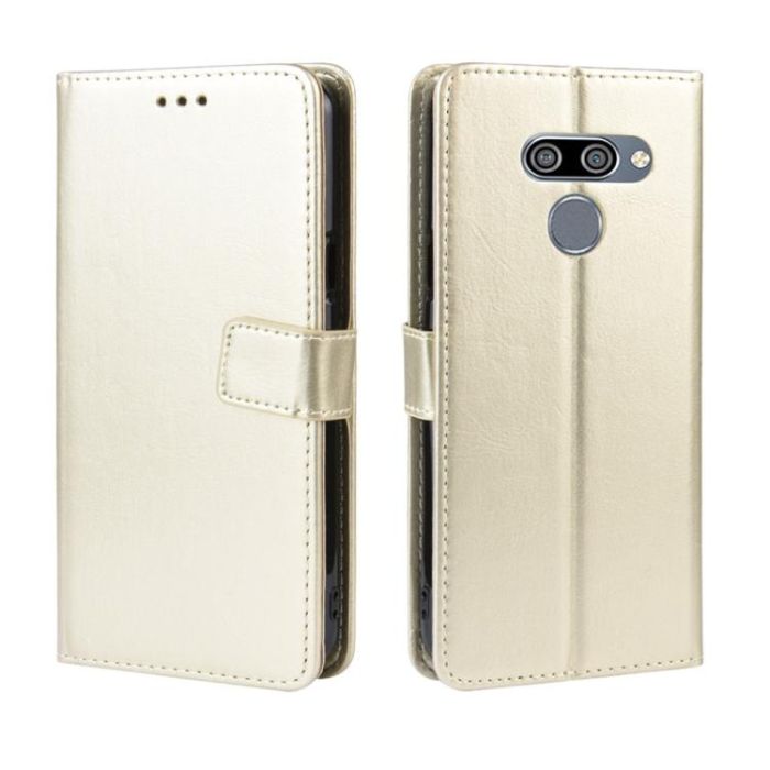 Retro Crazy Horse Texture Horizontal Flip Leather Case for LG K50 /LG Q60, with Holder & Card Slots & Photo Frame(Gold)