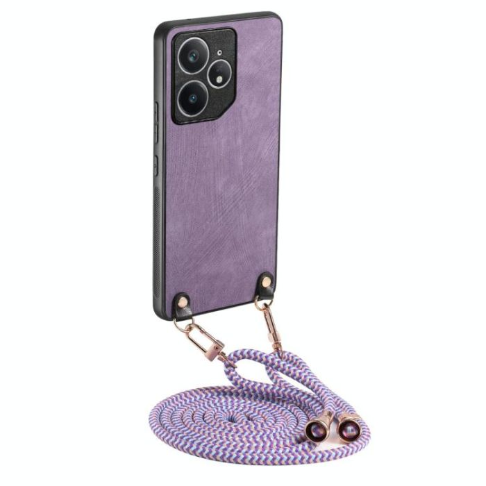 For Realme Neo7 Vintage Leather PC Back Cover Phone Case with Crossbody Strap(Purple)