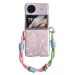 For vivo X Flip Pearlescent Shell Texture Side Buckle Phone Case with Rainbow Bracelet(Pink)